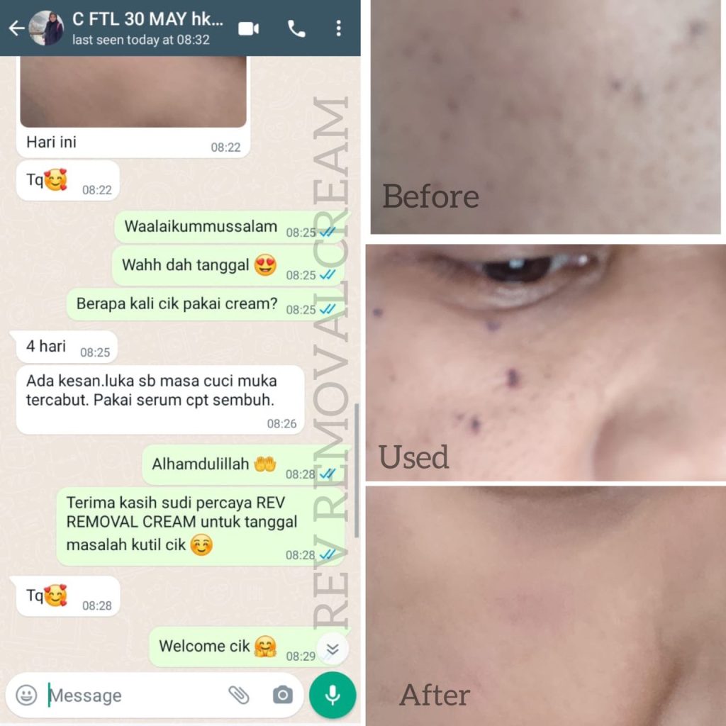 Contact Customer Service 019-6818826 untuk ceritakan masalah yang anda hadapi dan panduan penggunaan REV REMOVAL CREAM